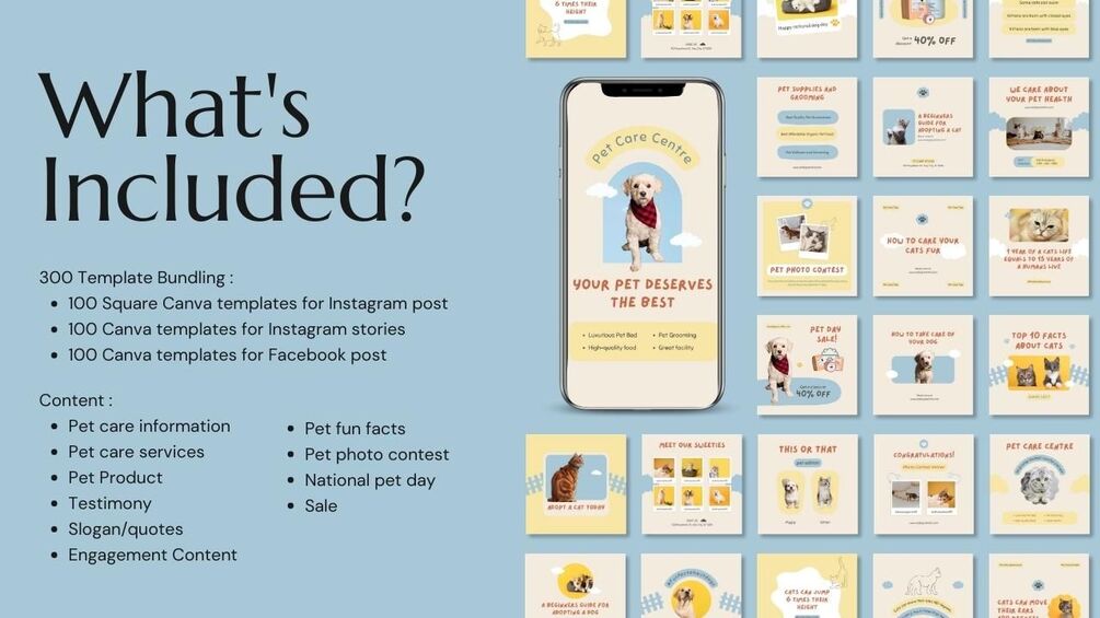 Pet Care — 300 Canva Social Media Template Bundle