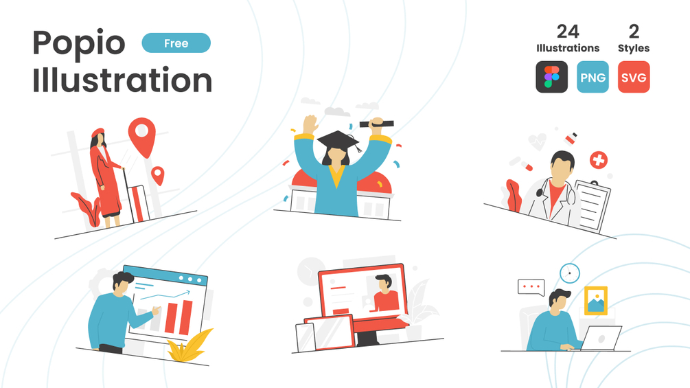 A free version of Popio consists of 24 vectors, handmade and customizable illustrations for your personal projects.